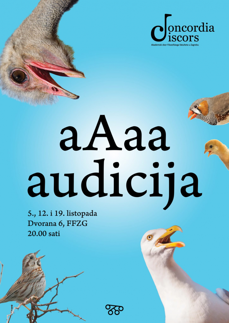 Audicije - Concordia discorsDragi naši budući pjevači i pjevačice,Jesenski rokovi su gotovi, nova akademska godina počinje, a s njome počinje i nova zborska sezona. Ovoga tjedna krećemo u nove zborske pobjede, a to znači da održavamo audicije za nove članove našeg veselog kolektiva!!Dođi na audicije koje će se održati 5., 12. i 19. listopada u 20.00 sati na Filozofskom fakultetu u Zagrebu gdje ćemo te dobro nahraniti i napojiti, ispitati veoma bitna pitanja poput "Kako praviš Čokolino?", "Koji ti je najdraži Pokémon?" i mnoga druga, a naši dirigenti će poslušati tvoj raspon i glasovne mogućnosti. Naravno, ne zaboravi pripremiti jednu pjesmu sebi za dušu jer takve su nam najdraže!