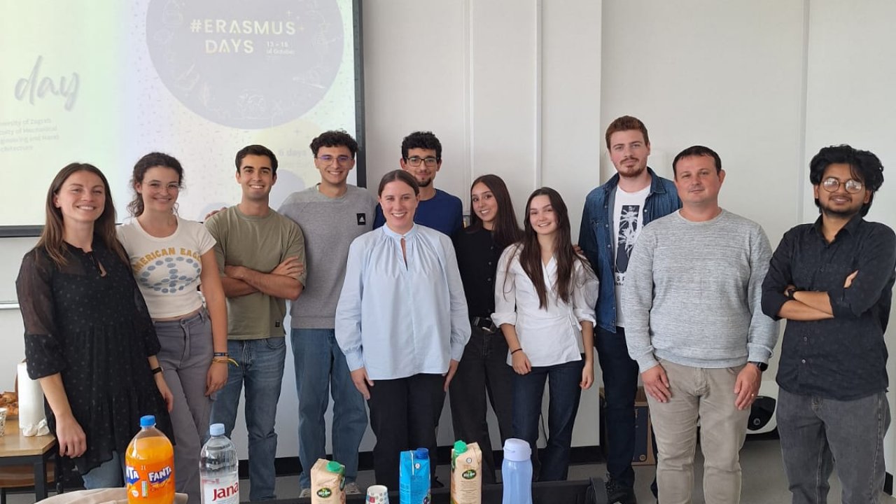 Obilježen Erasmus day @FSB! U sklopu Dana Erasmusa 2025., koji se ovaj tjedan obilježavaju diljem cijele Europe, u četvrtak 16. listopada organizirali smo Erasmus day @FSB, kratko druženje dolaznih i naših studenata u svrhu promocije Erasmus programa.Naših devetero dolaznih studenata predstavilo je svoje države i fakultete s kojih dolaze tako da su naši studenti imali direktnu priliku pitati strane kolege, prodekanicu za nastavu, savjetnicu za mobilnost i ECTS koordinatora sve što ih zanima o potencijalnom odabiru svoje Erasmus mobilnosti (bilo boravak, bilo praksa). Nakon prezentacija slijedila je kratka zakuska s pecivima pa smo tako obilježili i Dan kruha, a nakon neformalnog druženja dolazne studente proveli smo u obilazak fakultetskih zgrada, pri čemu su ih se posebno dojmili CRTA - Regionalni centar izvrsnosti za robotske tehnologije i SMART FACTORY na Zavodu za industrijsko inženjerstvo. Kako se tražilo mjesto više, zahvaljujemo svima na dolasku i aktivnom sudjelovanju! Ostale vijesti iz kategorije Javni poziv Grada Zagreba za dodjelu novčane potpore obrazovanju doktoranada za ak. god. 2025./2026.15. siječnja 2026. Matea Klanac, 9. siječnja 2026. Silvana Škoko Gavranović, 8. siječnja 2026. Katarina Plancutić, 8. siječnja 2026. Katarina Plancutić, 8. siječnja 2026. Katarina Plancutić, 7. siječnja 2026. Damir Kačer, 17. prosinca 2025. Katarina Plancutić, 9. prosinca 2025. Katarina Plancutić, 3. prosinca 2025. Katarina Plancutić, 20. studenog 2025. Katarina Plancutić, 13. studenog 2025. Katarina Plancutić, 12. studenog 2025. Katarina Plancutić, 5. studenog 2025. Katarina Plancutić, 5. studenog 2025. Katarina Plancutić, | |