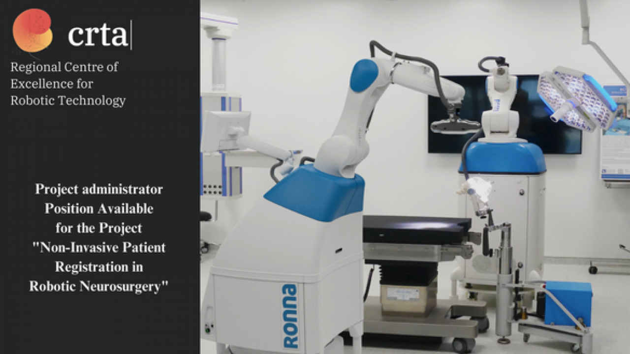 Tražimo kvalificiranog kandidata za poziciju Administratora na projektu „Neinvazivna registracija pacijenta za robotsku neurokirurgiju“. Ovaj projekt, koji se odvija u sklopu Regionalnog centra izvrsnosti za robotske tehnologije (CRTA), pruža priliku za rad u interdisciplinarnom okruženju usmjerenom na razvoj tehnologija budućnosti.