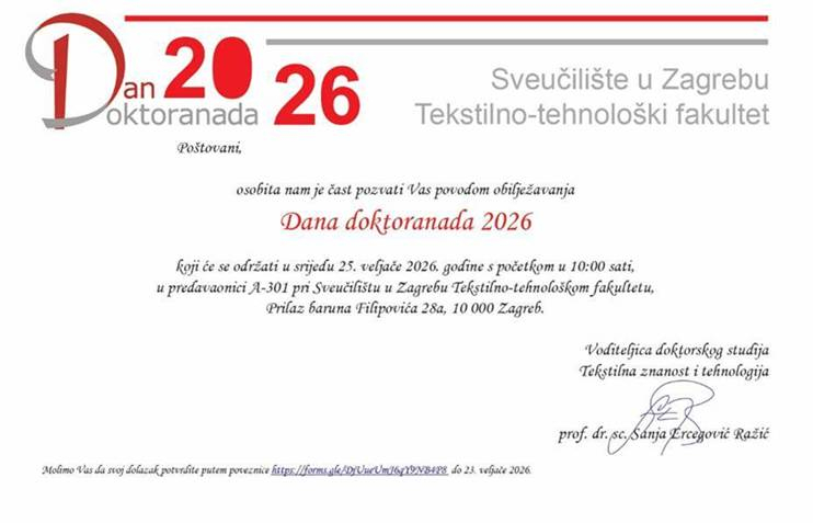 Poziv na Dan doktoranada Tekstilno-tehnološkog fakulteta