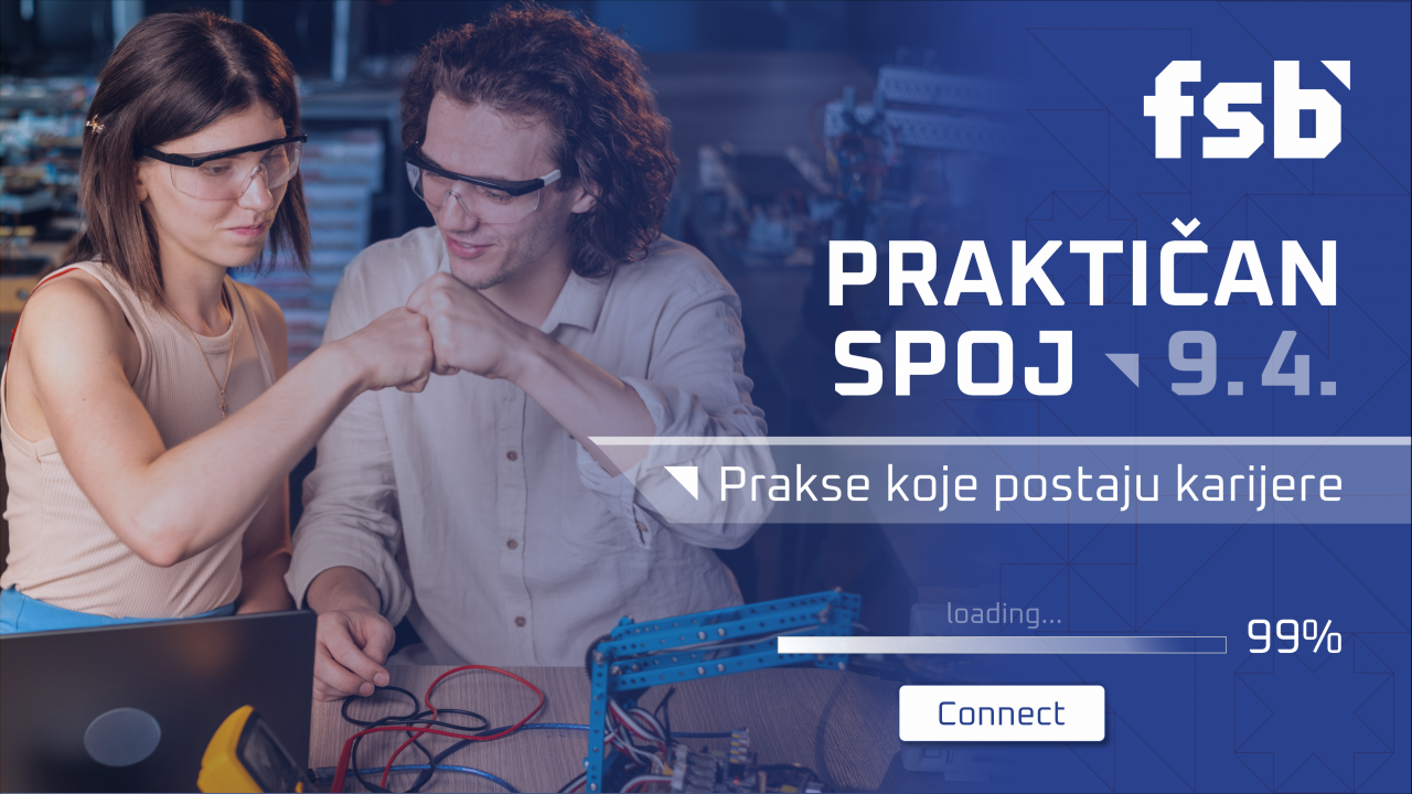 Uskoro kreće 4. FSB Praktičan spoj: Prakse koje postaju karijere Fakultet strojarstva i brodogradnje s ponosom najavljuje 4. izdanje FSB Praktičnog spoja, jedinstvenog događaja koji ima za cilj povezati studente s poduzećima gdje će obavljati stručnu praksu. Nakon tri uspješna izdanja, ovogodišnji susret održat će se u četvrtak, 9. travnja 2026., u prostorima Fakulteta.Studenti, izgradite karijeru kroz praksu! Želite li teorijsko znanje primijeniti na stvarnim projektima? Praktičan spoj nudi vam priliku da: