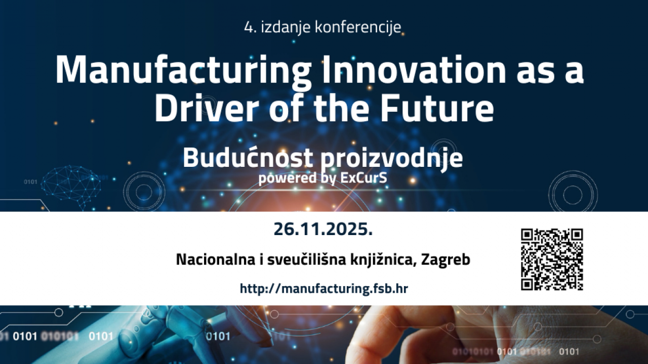 Pozivamo zainteresirane studente FSB-a da se prijave za sudjelovanje na četvrtom izdanju konferencije "Manufacturing Innovation as a Driver of the Future", koja će se održati 26. studenoga 2025. u Nacionalnoj i sveučilišnoj knjižnici u Zagrebu.Konferencija okuplja vodeće predstavnike hrvatskih proizvodnih tvrtki koji će kroz deset stručnih predavanja predstaviti svoje studije slučaja – kako su uspješno implementirali nove digitalne tehnologije, unaprijedili učinkovitost i fleksibilnost procesa te ostvarili mjerljive rezultate.